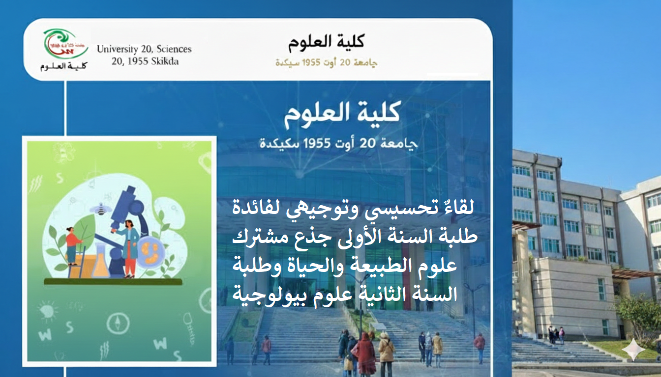 في إطار السنة المالية 2026، تعلن كلية العلوم بجامعة 20 أوت 1955 – سكيكدة عن تنظيم استشارة تخص: